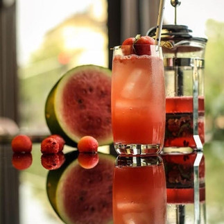 · Once the gin is muddled and infused with the watermelon, cinnamon & basil strain and serve into a tall glass filled with ice